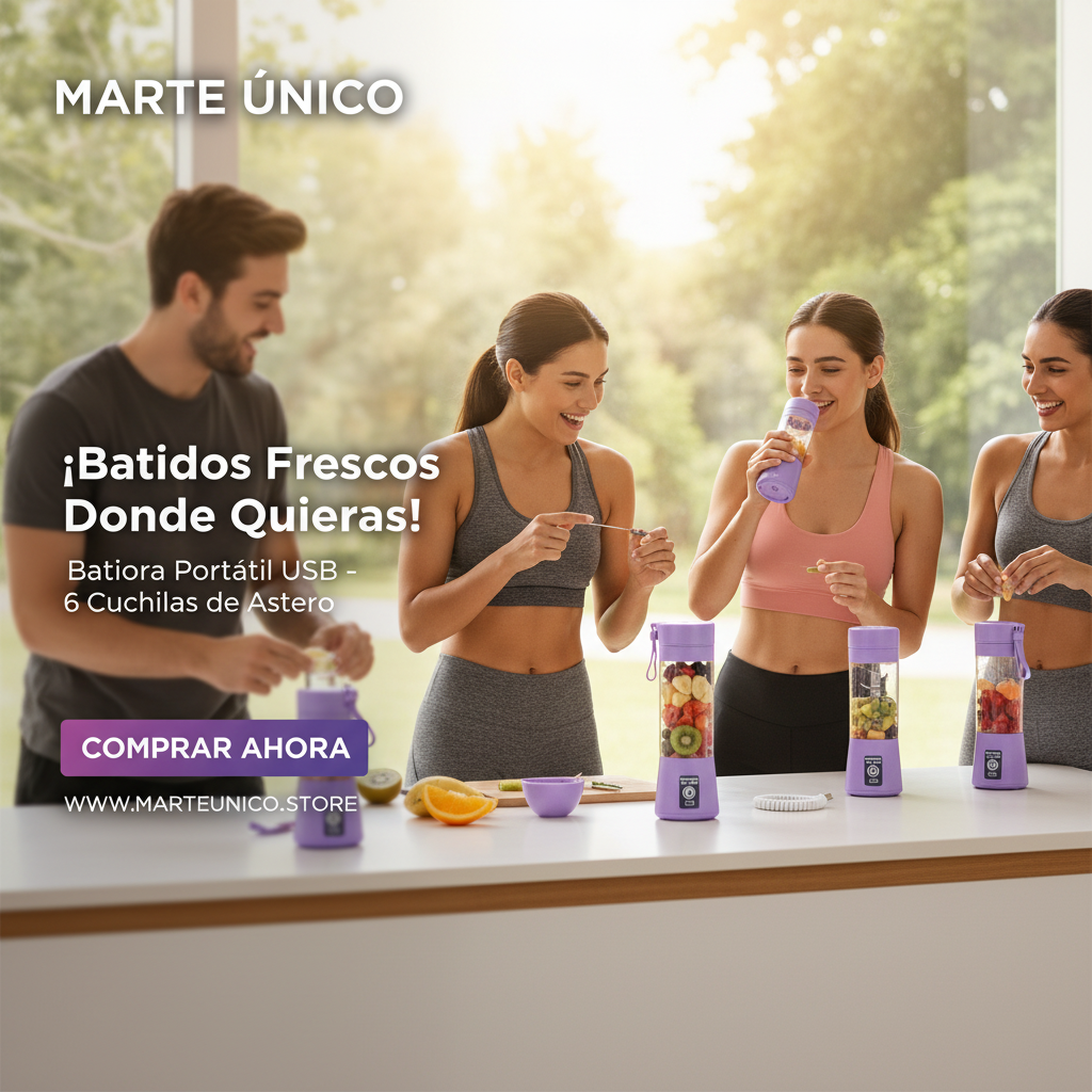 Imagina preparar tu batido favorito en segundos, sin importar dónde estés. Con nuestra Batidora Licuadora Portátil USB, disfrutarás de bebidas nutritivas frescas en el gimnasio, la oficina, el parque o durante tus viajes.