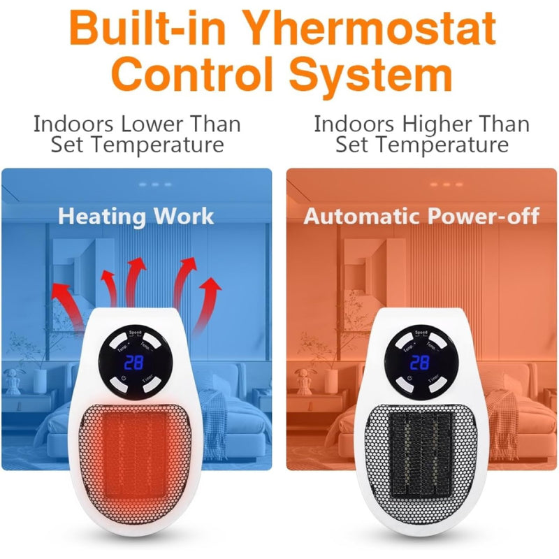 Disfruta de un ambiente cálido y acogedor en segundos con este calefactor portátil de bajo consumo. Su diseño compacto se enchufa directamente a la pared, ofreciendo calor eficiente sin ocupar espacio.