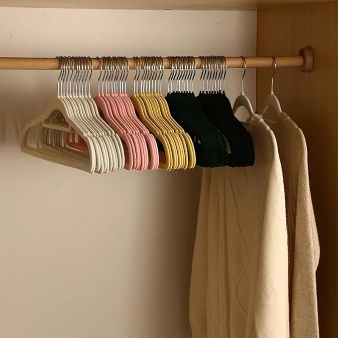 Transforma tu armario en un santuario de orden y sofisticación. 💖 Estas perchas de diseño ultrafino, recubiertas de suave terciopelo flocado, no solo evitan que la ropa se resbale, sino que también maximizan el espacio de almacenamiento. Su tacto delicado cuida tus prendas más sensibles, mientras que su construcción robusta soporta trajes y abrigos sin deformarse. Unifica el estilo de tu armario para lograr esa paz visual que tanto buscas. ✨