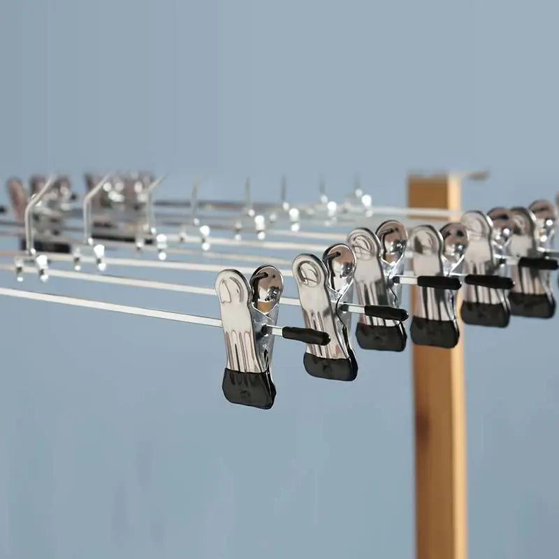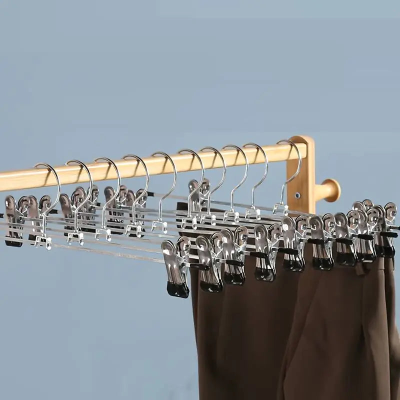 Cada percha cuenta con clips que sujetan tus pantalones de forma segura, evitando que se resbalen o se caigan. Ya sea que estés secando ropa en casa o organizando tu armario, estas perchas son perfectas para cualquier situación.